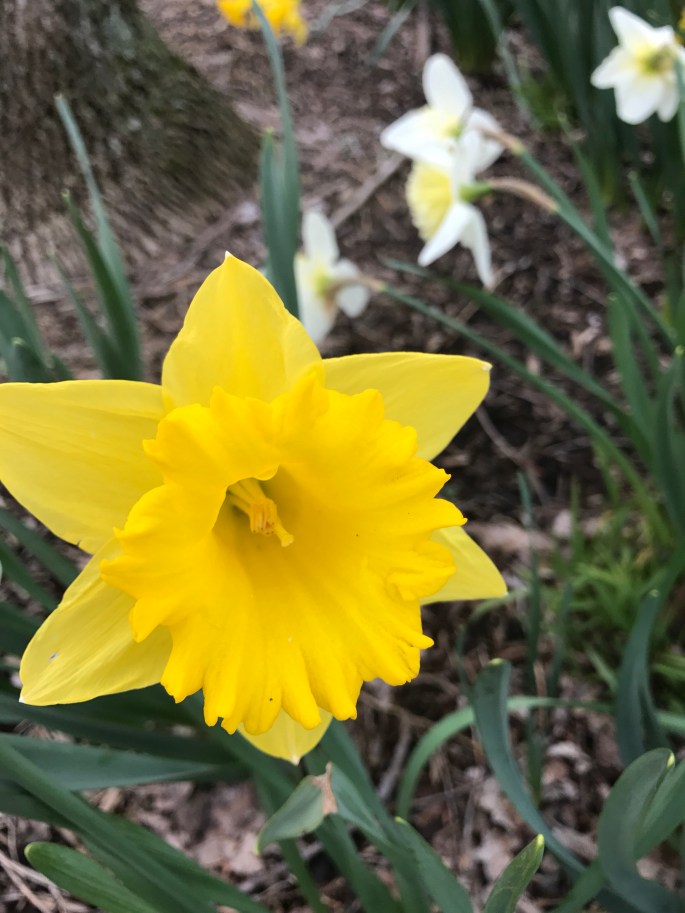 The natural world embraces and accepts events as they come. Driving home from Bethany, the snow and rain alternated, coating the daffodils, tulips, and newly greened grass. The trees bent with the wind while the creeks and swollen streams swiftly rushed over rocks and embankments. It appeared as if nature were gently sighing in the acceptance.