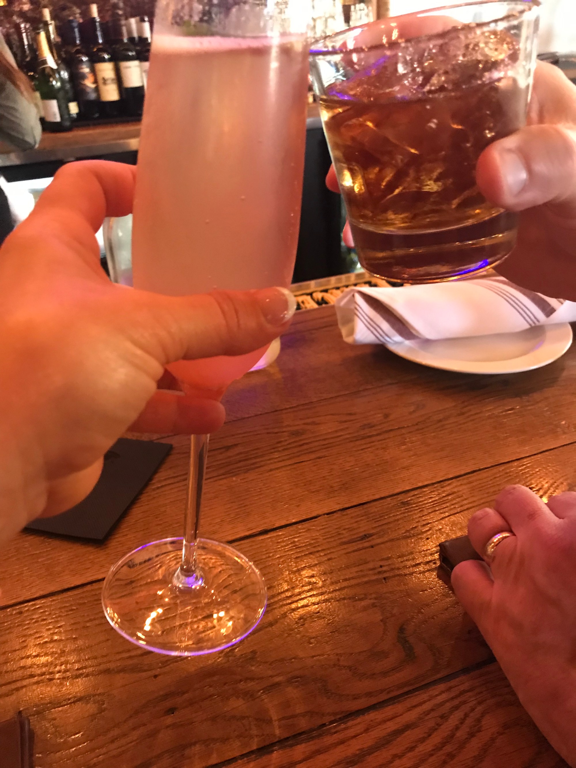 According to the founder, Mark Fichtner, Carson’s is . . .”a rustic, yet refined concept with chef-driven recipes paired with prohibition cocktails, hand-selected wines, and craft beers.” After a beautiful Uber drive through downtown, we walked into an industrial style setting with abundant leather, wood, brick, and over-sized crystal chandeliers sparkling overhead. As odd as that sounds, the atmosphere worked, and put us right as ease.