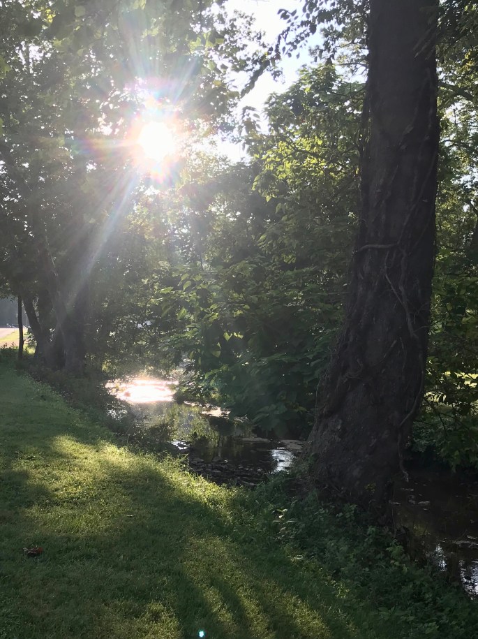 Your waters are gathered from different sources. There are times, like today, when your waters are swift, becoming deep and darkened with the mud of debris, rocks, and earth. Other times, like this past week, your waters are nearly still as you become shallow and more clear. No matter what you are becoming, though, Dear Four, you remain ever Four Pole Creek, part of the Ohio River Watershed that feeds into the grand Mississippi River, and empties into the Gulf of Mexico flowing into the Atlantic Ocean. Along the way, some of your water is evaporated into the air, cooled, condensed, and eventually returned to the earth–molecule by sweet molecule–a single droplet that is all part of the larger body of creation.