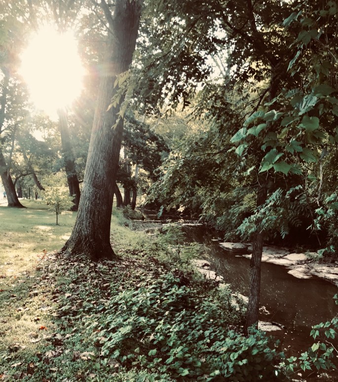 Earlier in the week, your waters were different. They slowly glided from one pool to another. Of course, it was quite hot outside. I couldn’t help but laugh at the number of neighborhood dogs splashing around or sitting in the cool shallows of those pools. You remain ever the friend to the creatures in need, no matter levels and speed of your waters.