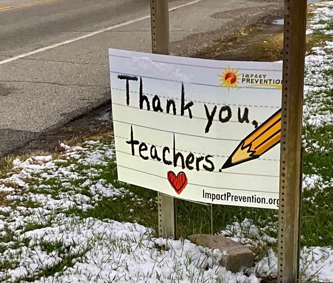“Thank you, Teachers,” the sign read on the side of the road.
