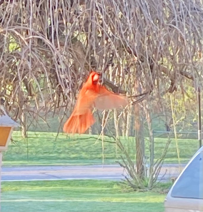 “Cardinals may protect a territory size of 1/2 to 6 acres during breeding season. Males will chase other males and females will chase other females from the pair’s territories. Cardinal birds often fight with their reflection in house windows and car mirrors.” –Wild-Bird-Watching.com