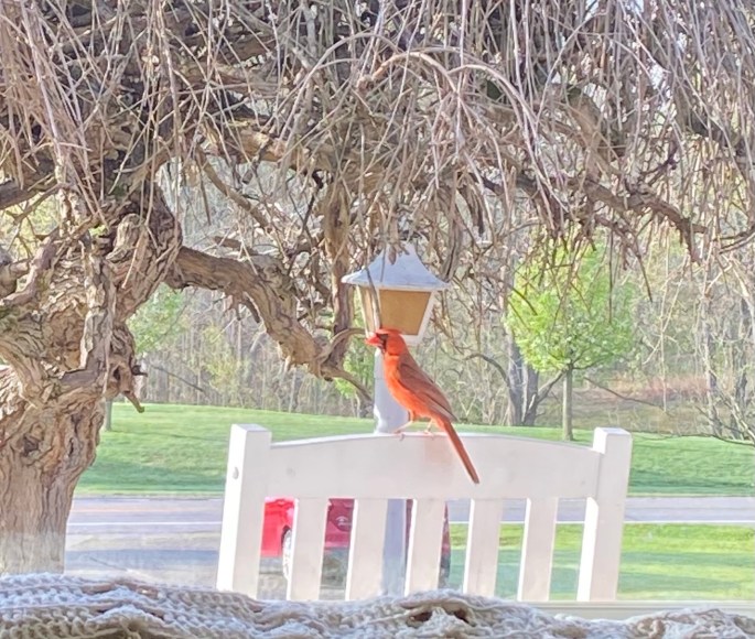 As I write this during the third full week of April, both couples seemed to have somewhat settled. While the males can sometimes be heard plinking away, they are blessedly less active than when they first moved in. However, the tune of the pair’s vocalizations still fills the air at the day’s beginning and end. The rarely seen females can be heard from inside of their home singing a wide repertoire of choruses, while the male confidantes still proudly sing the same ol’ melody, over and over, right outside their home.