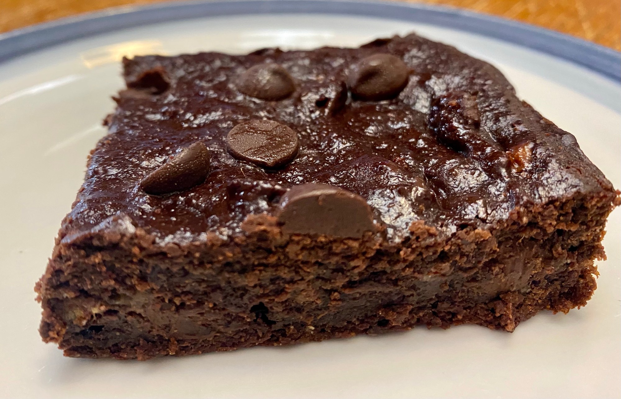 I made this recipe on a Saturday afternoon, and our entire home was redolent with the scent of baking chocolate. The recipe was super-easy, requiring only one bowl, and honestly took no longer than 10 or so minutes of active kitchen time. The oven did the rest. Once cooled, I cut the recipe into 9 generous sized squares and stored part of them in a plastic container in the fridge. I could have frozen them for future weekend cravings, but they did not last that long.