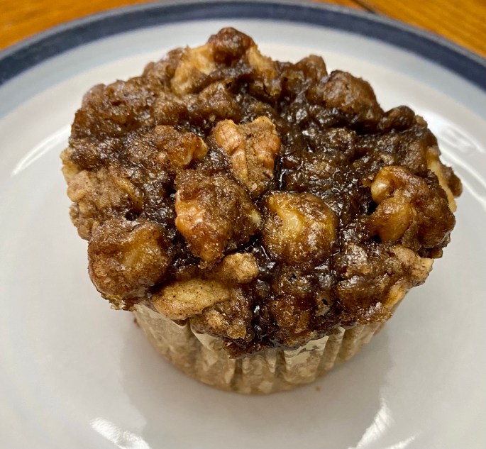 Tip: I cut the nut-topping recipe in half, and only topped half of the muffins. On the half without nut topping, I sprinkled with cinnamon and sugar. Finally, you can skip the nut-topping altogether, and/or stir in ½ cup chopped walnuts into batter when adding in chopped apples.
