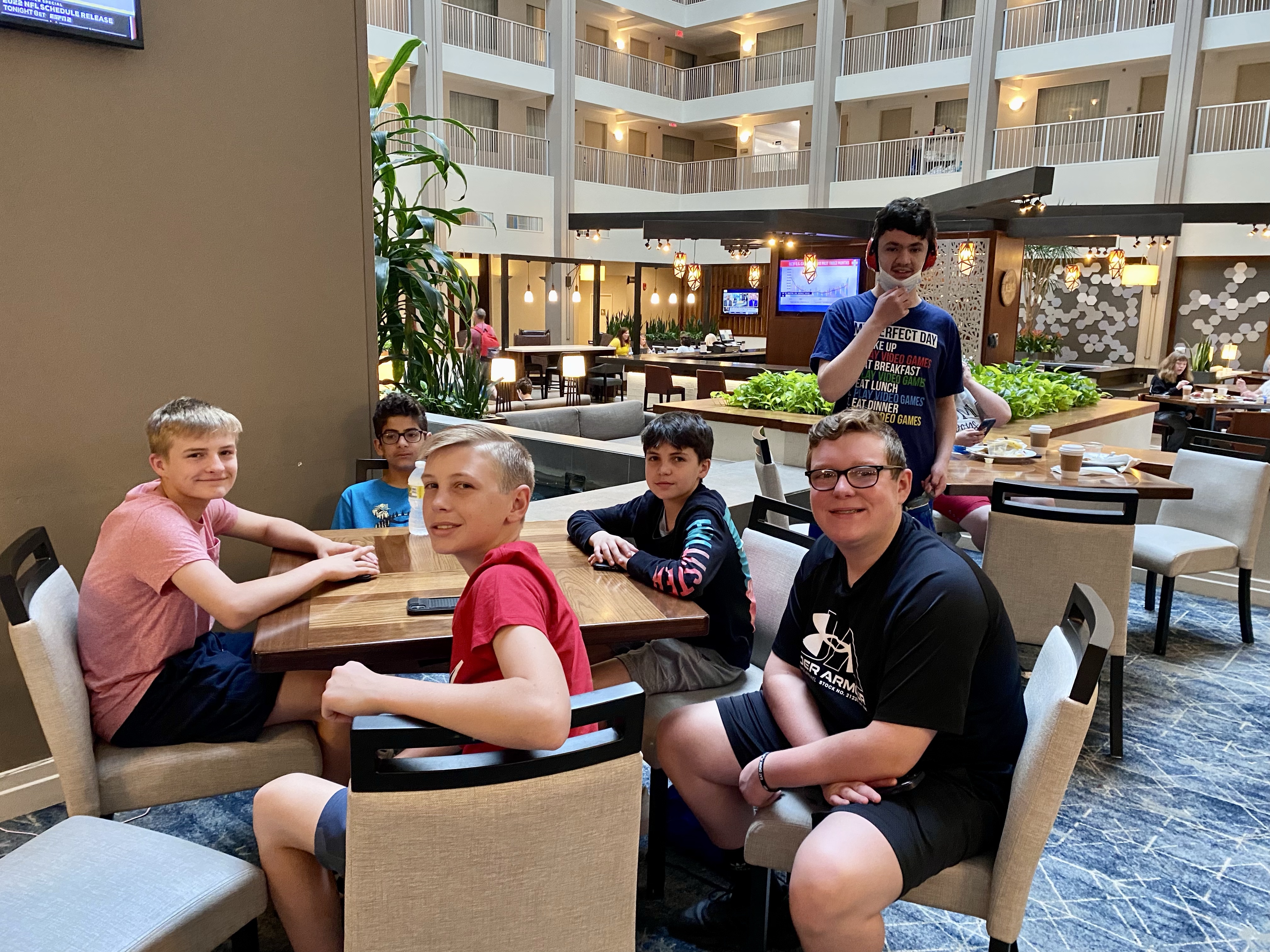 A great trip to Cincinnati must include a great place to stay, and our group certainly drew the lottery ticket for that. Embassy Suites Cincinnati Rivercenter, located in Covington, Kentucky, was the ideal location for a large group, but would also meet the needs of traveling families and individuals. It is located on the south bank of the Ohio River, and it offered our group spectacular views into Cincinnati proper, especially at night. The hotel served a daily breakfast buffet featuring made-to-order foods which was perfect for our group. Additionally, it offered a fitness center, pool–both of which our students loved– as well as pet-friendly rooms, on-site restaurant, business center, and so much more. The staff, featuring Danyelle Doherty, Sales Manager; Trish Buda, Reservation Coordinator; Kris Bridge, Front Desk; and the Food Beverage Crew for our stay–Ali, Tasha, and Al–offered outstanding, attentive service. In fact, having chaperoned several of these trips in previous years, they offered, by far, the most helpful, thoughtful, and courteous service I’ve experienced with a school group. If you’re in the area, we certainly recommend you consider staying with them.