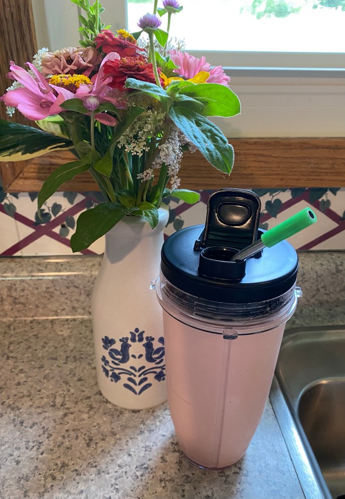 A beautiful flower arrangement by and from my daughter alongside her Watermelon Replenisher.