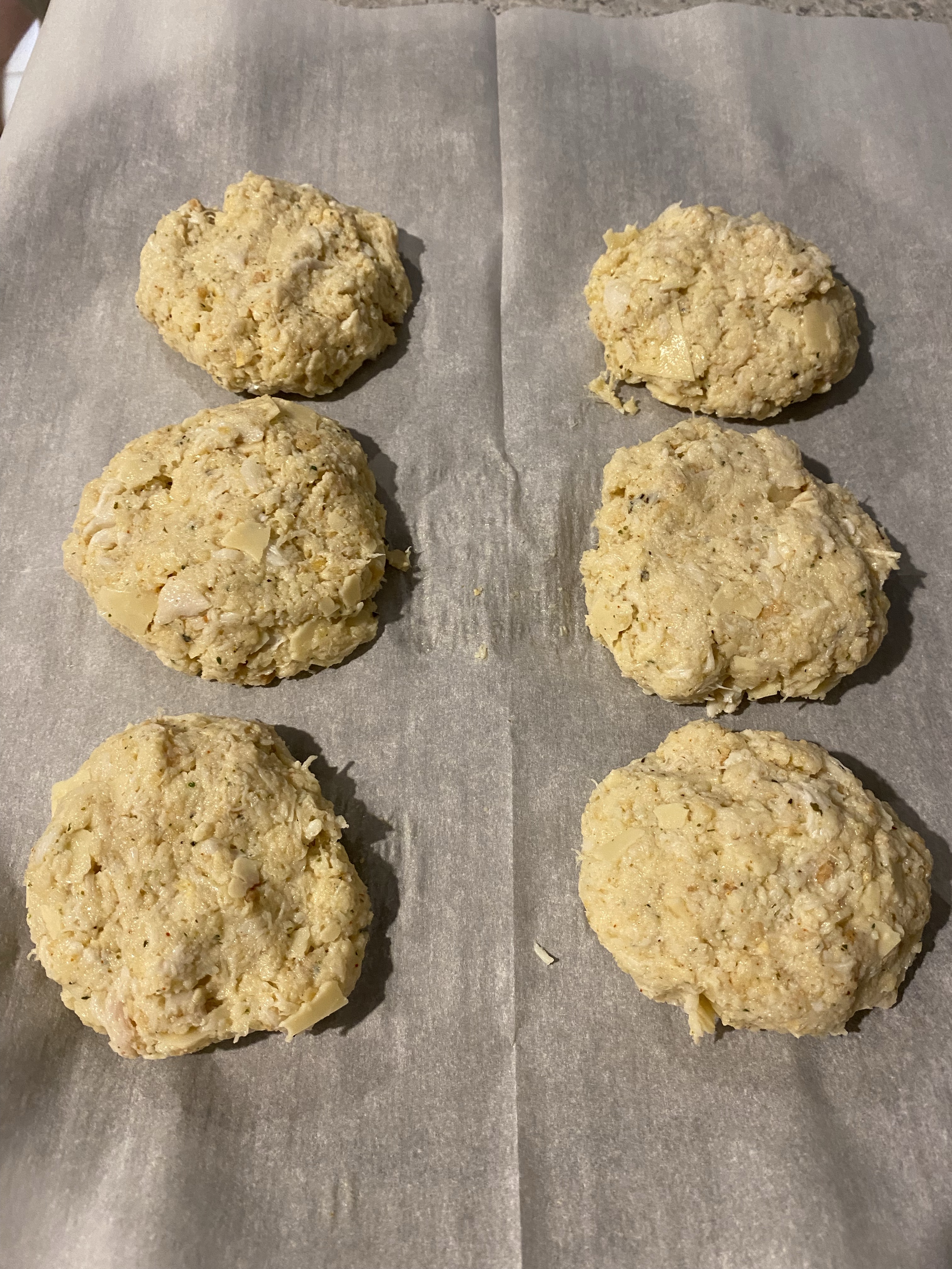 Repeat process, allowing an inch or two of space between each crab cake patty.