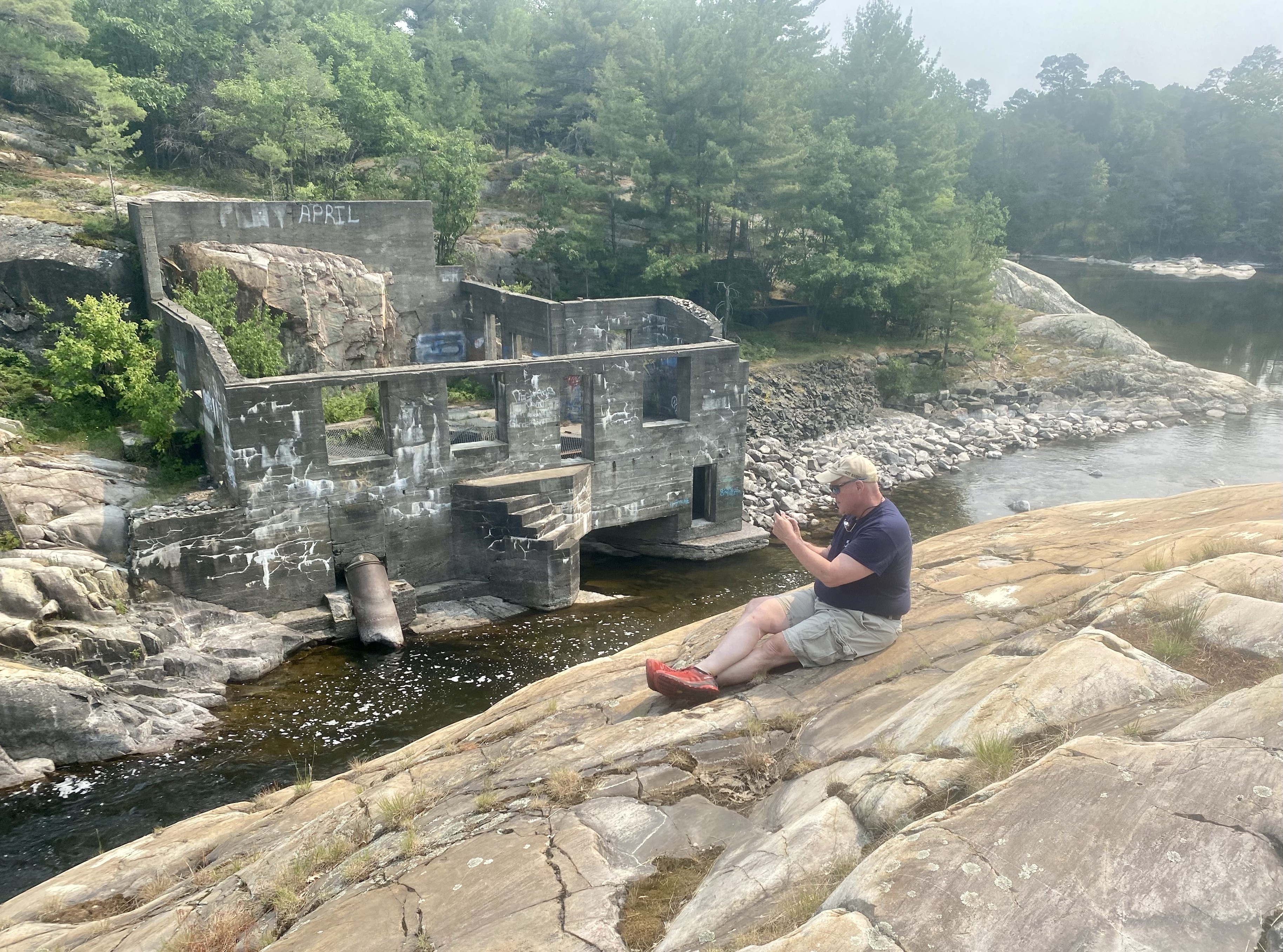 As mentioned in a previous piece, John and I stayed at Charlton Lake Camp–a camp we highly recommend–which prides itself on being a “housekeeping cottage resort for families, fisherman, artists, and adventurers.” It is located in the heart of the La Cloche Mountains, with its stunning scenery, nearby hiking trails, charming nearby towns–such as nearby Espanola and Whitefish–and welcoming people. In addition to being able to walk out the door of our cottage and head directly to the water for fishing, boating (including kayaking/canoeing), and swimming, we were also a short driving distance to historic hiking trails, cultural centers, and landscapes that have inspired scores of great art, made particularly famous by a group known as the Group of Seven.
