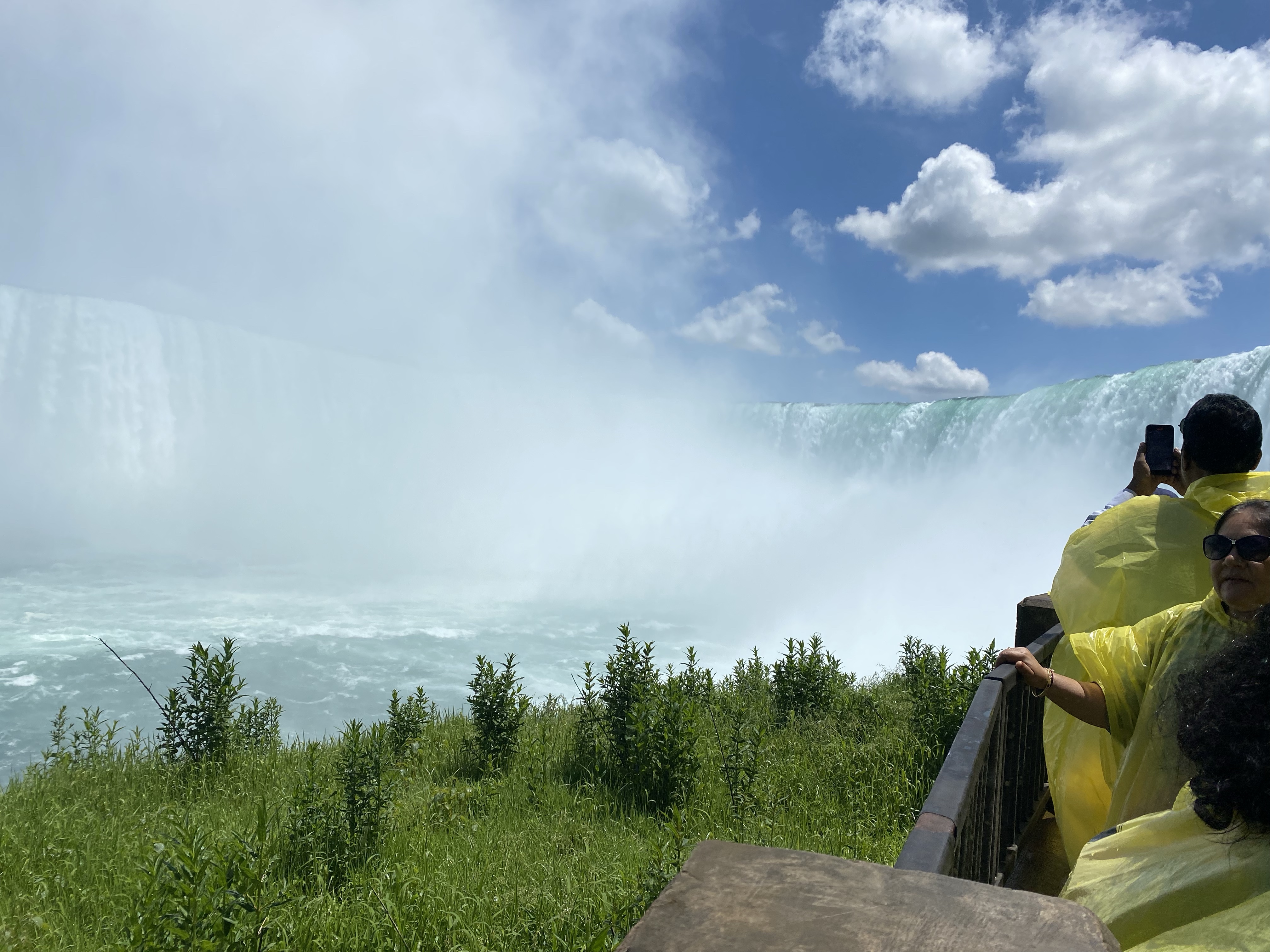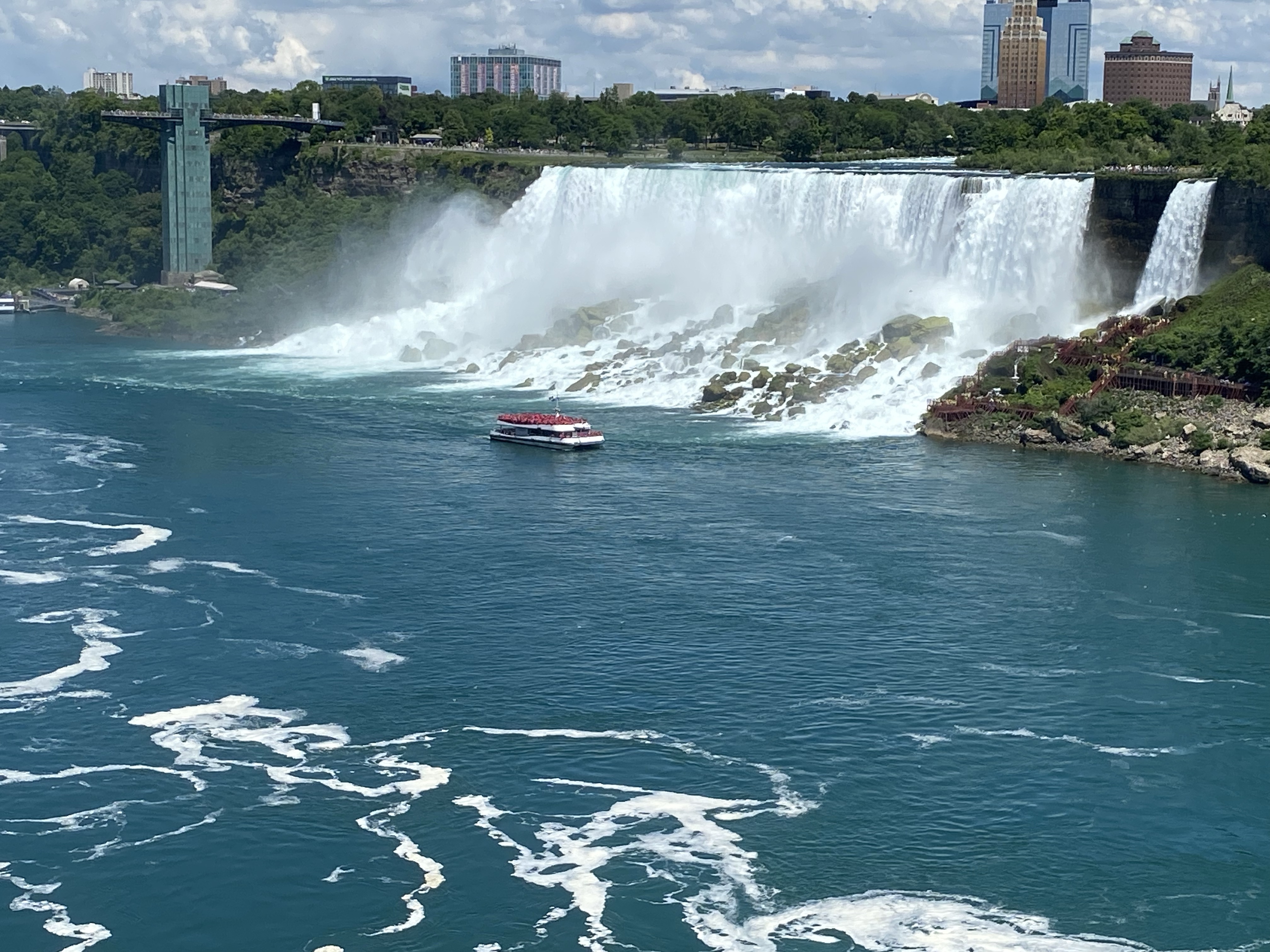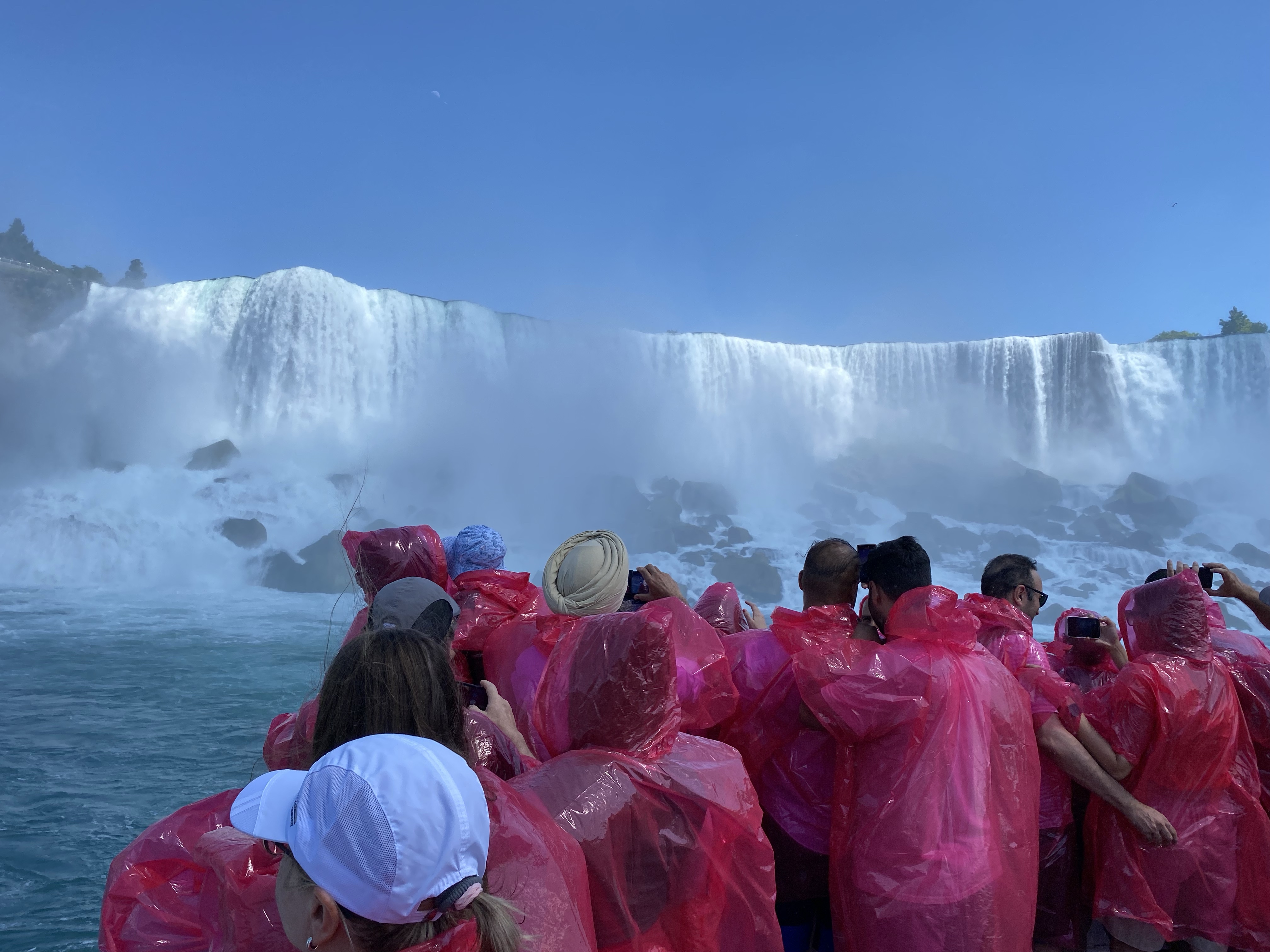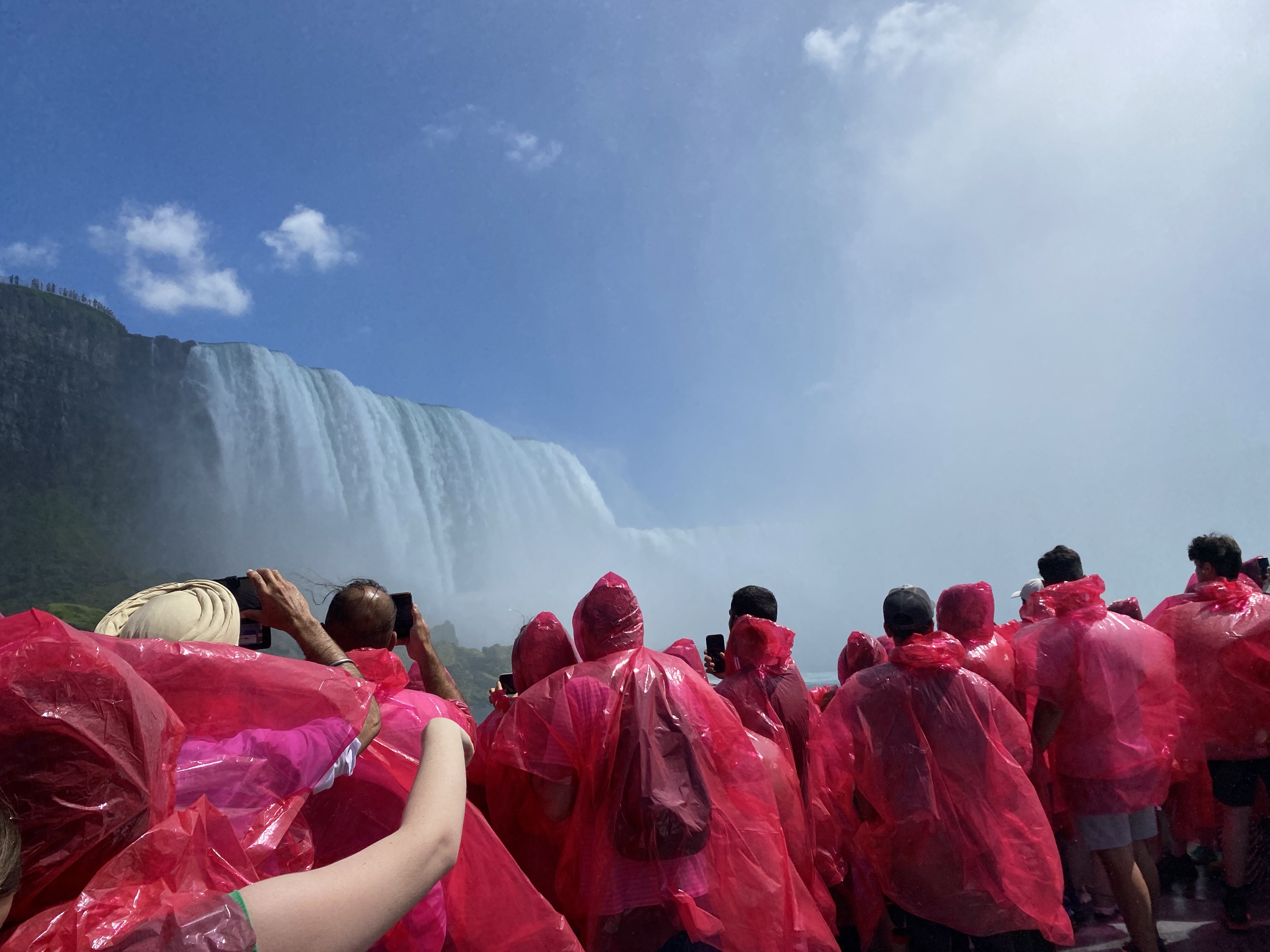 Our voyage to the falls lasted approximately 20 minutes, but our memories will last a lifetime. Our up close and personal views of Niagara Gorge, American Falls,                    and Bridal Veil Falls were astounding, filled with a continuous surround-sound of various degrees of intensity and volume as the boat thrashed about the water. However, it was the face-to-face encounter with the prodigious, pounding waters of Horseshoe Falls that left us vibrating from head to toe with its sheer volume of power.  By the end, we were soaked, and left feeling grateful for such an immersive, unforgettable experience.