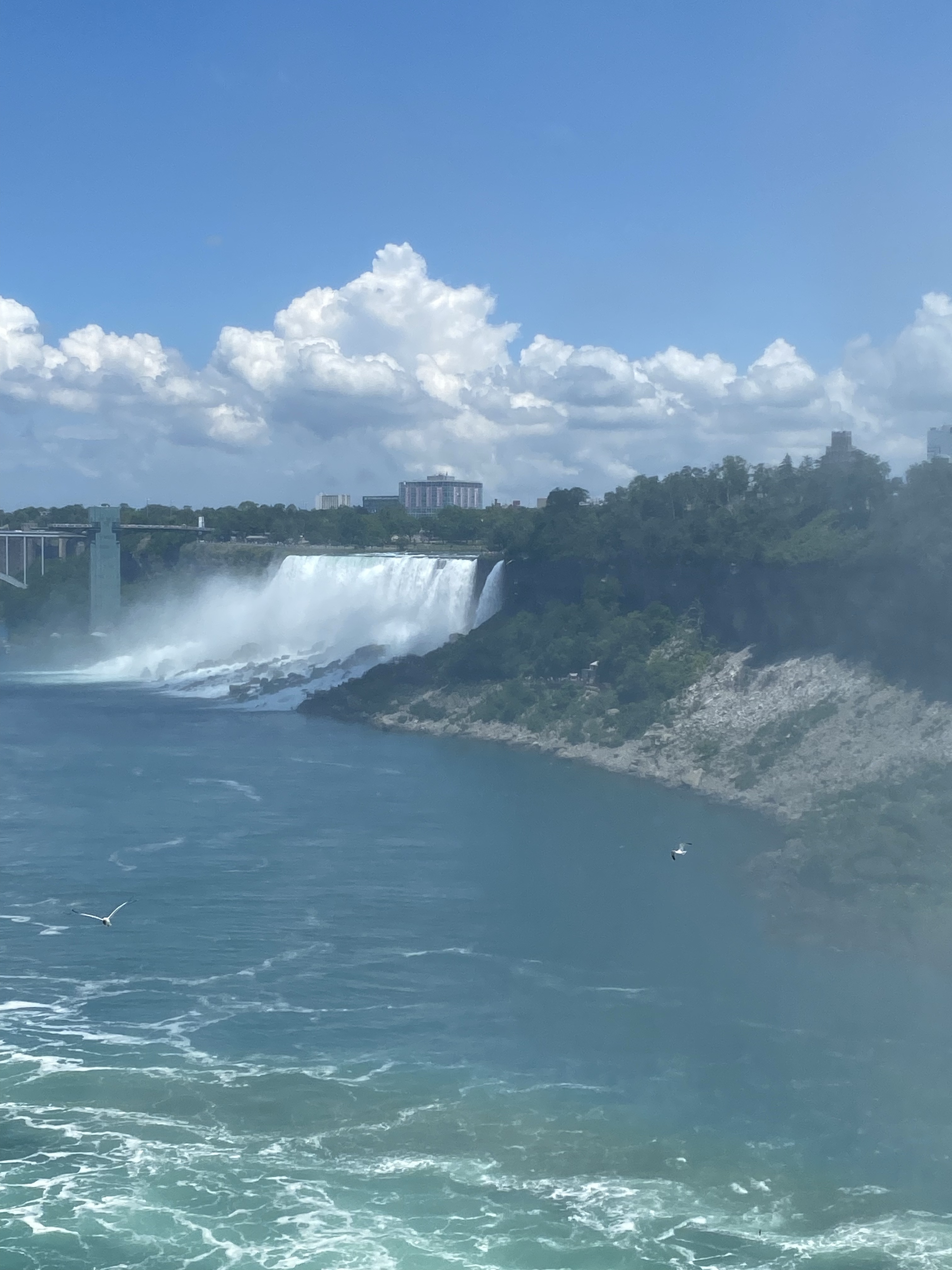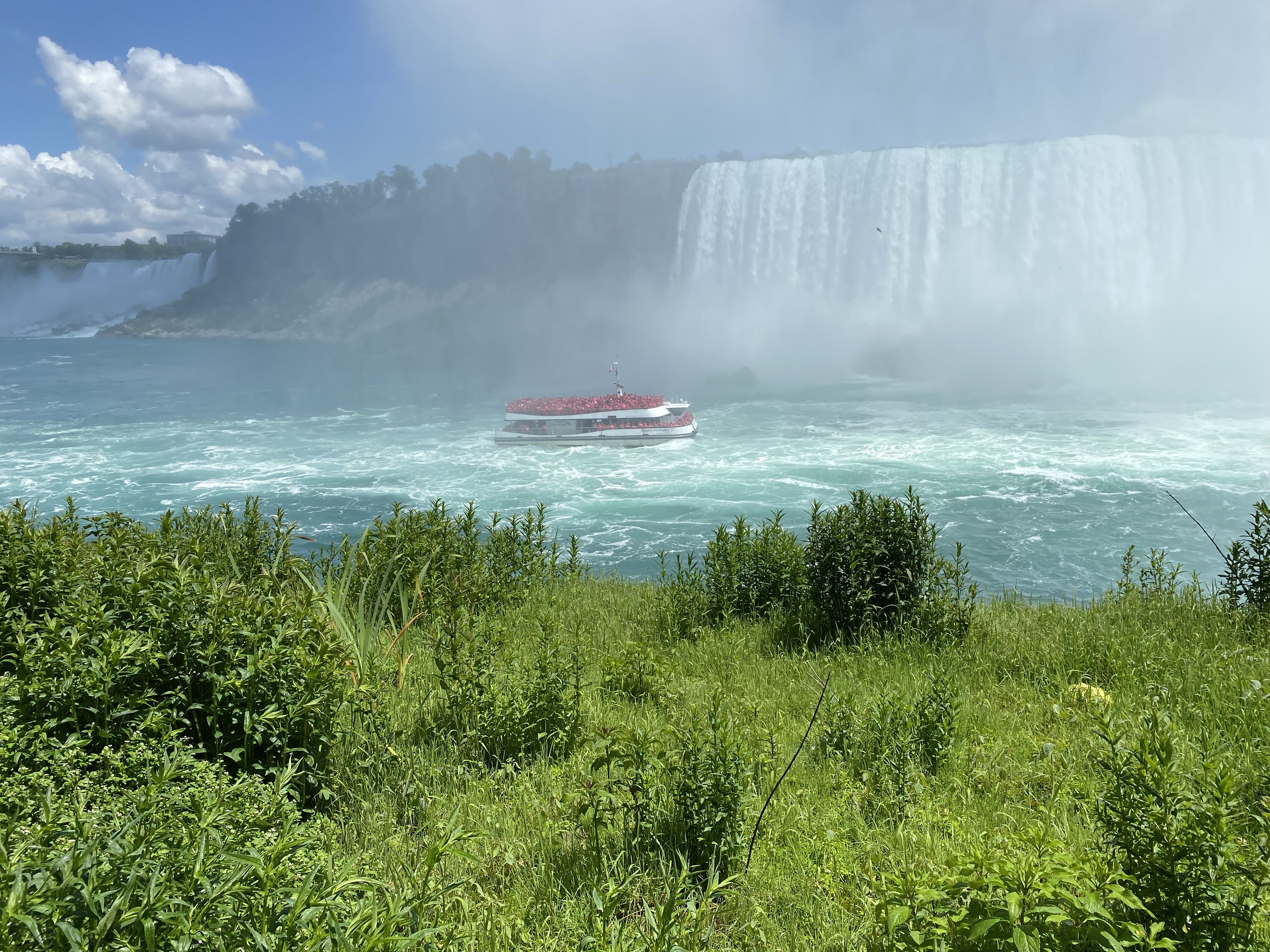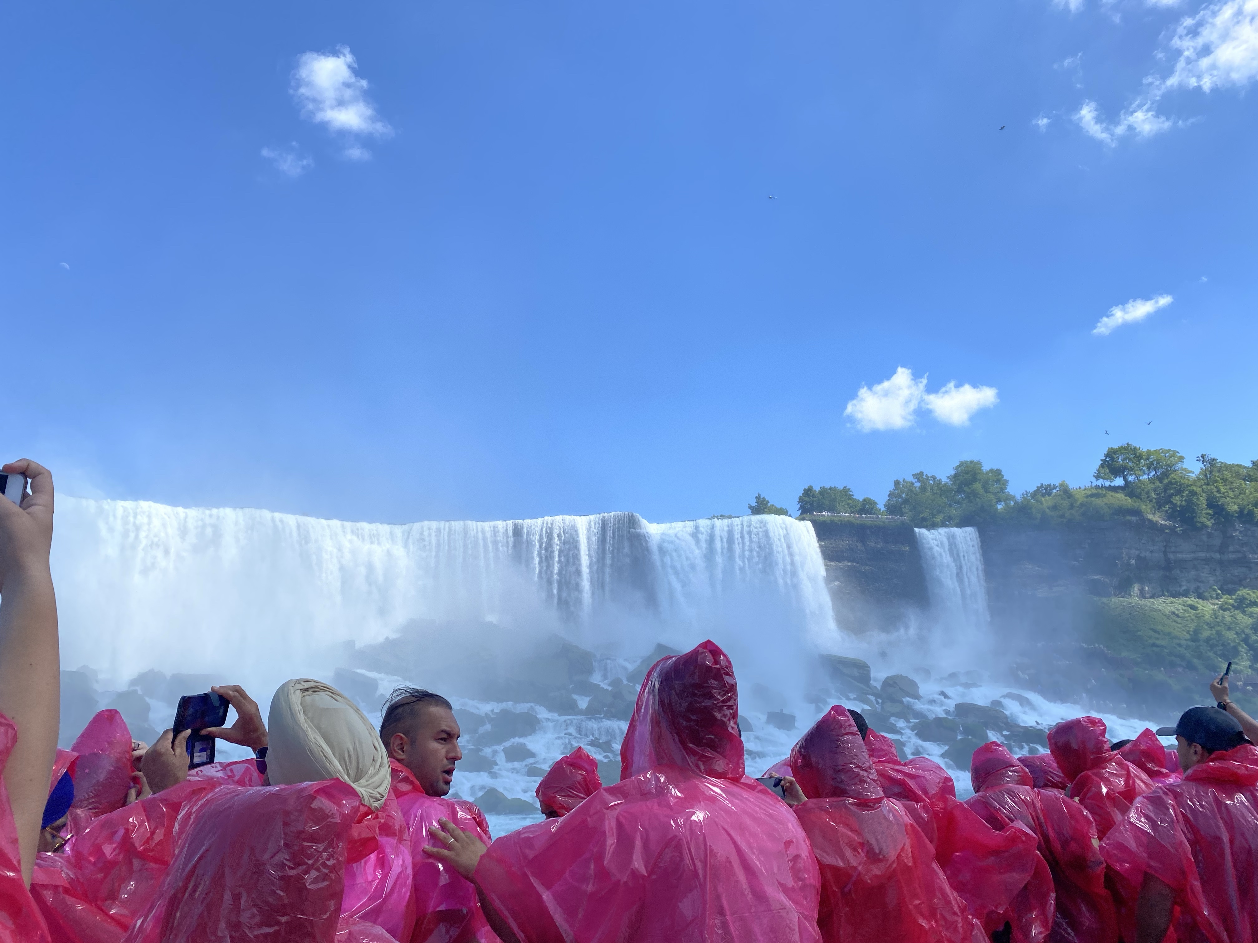 Our voyage to the falls lasted approximately 20 minutes, but our memories will last a lifetime. Our up close and personal views of Niagara Gorge, American Falls,                    and Bridal Veil Falls were astounding, filled with a continuous surround-sound of various degrees of intensity and volume as the boat thrashed about the water. However, it was the face-to-face encounter with the prodigious, pounding waters of Horseshoe Falls that left us vibrating from head to toe with its sheer volume of power.  By the end, we were soaked, and left feeling grateful for such an immersive, unforgettable experience.