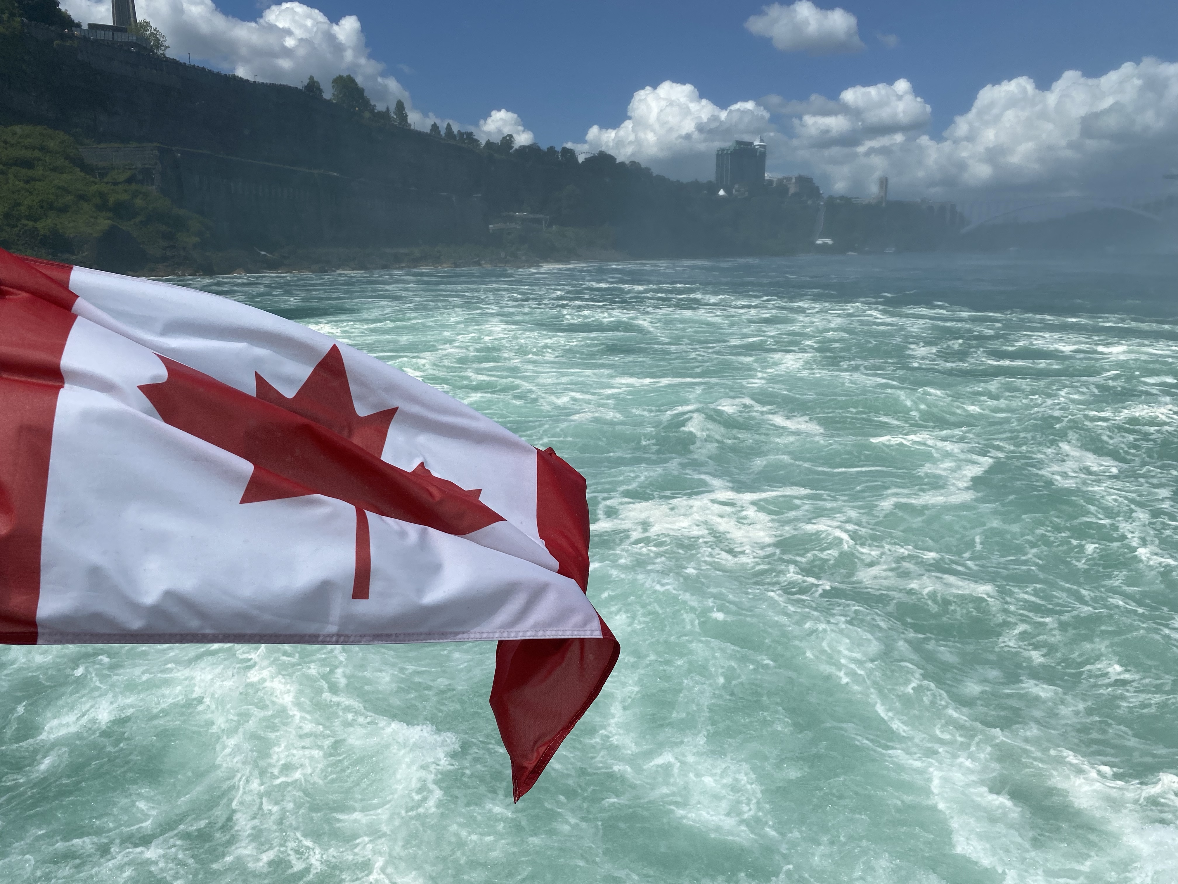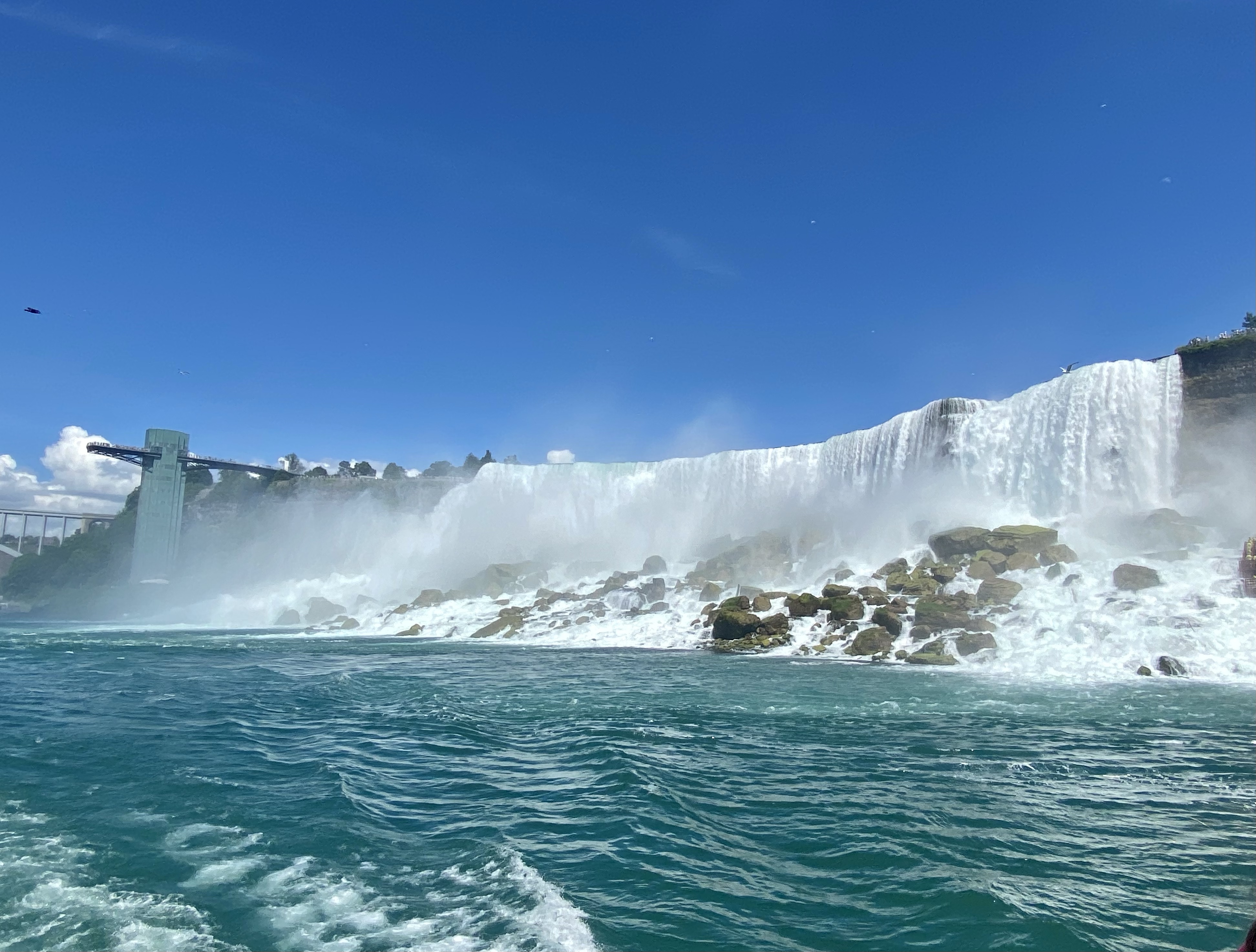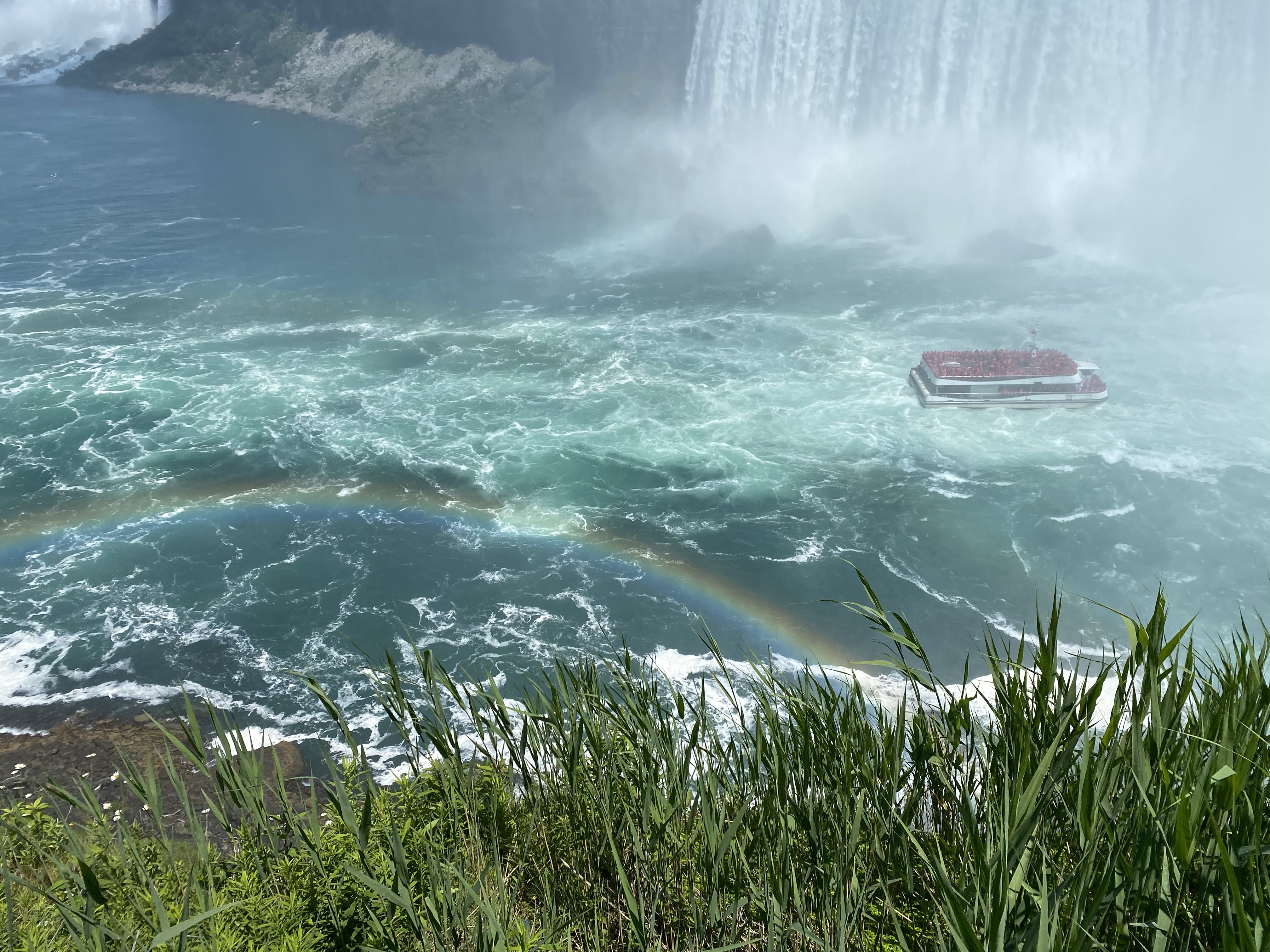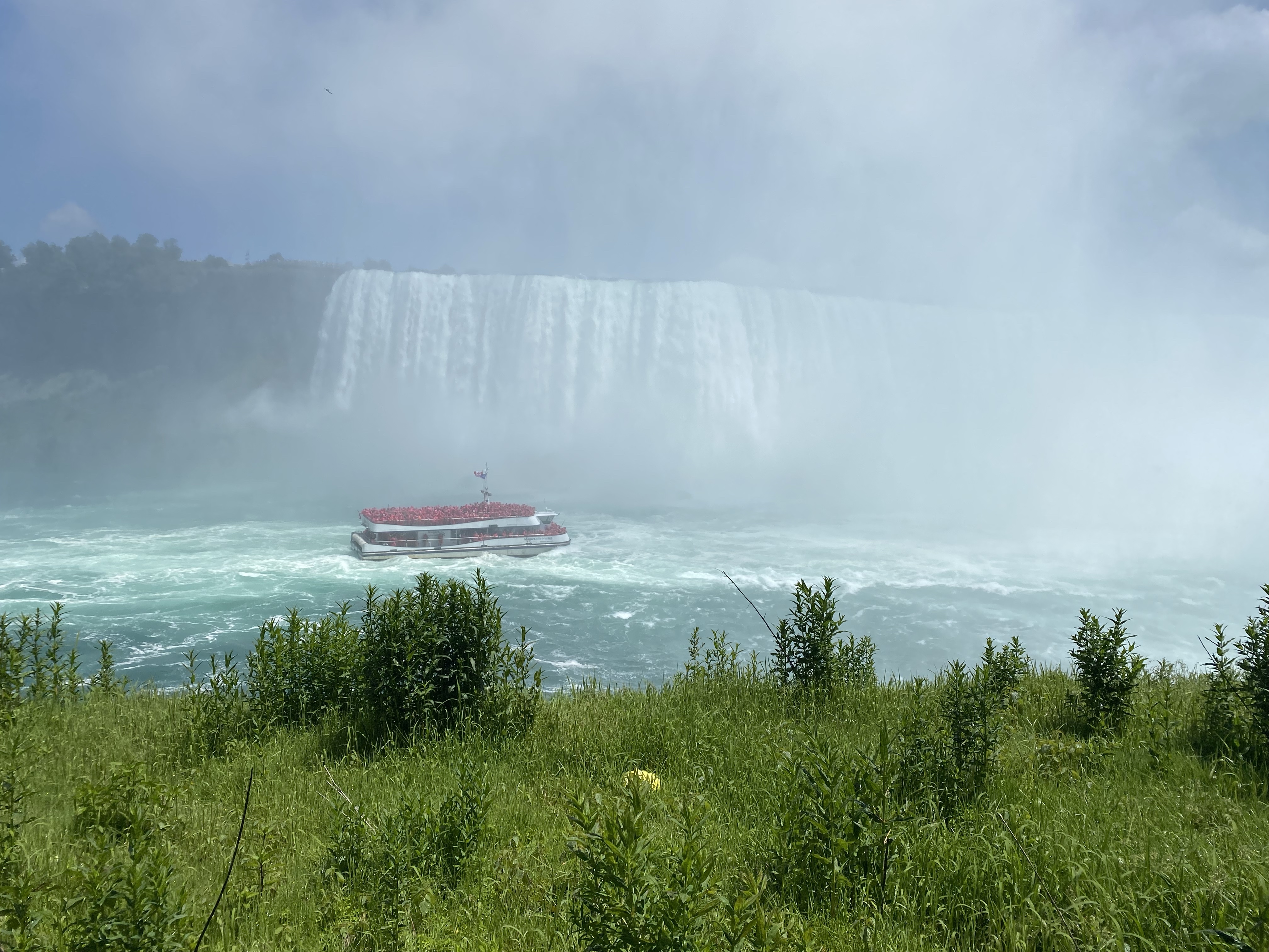 Our voyage to the falls lasted approximately 20 minutes, but our memories will last a lifetime. Our up close and personal views of Niagara Gorge, American Falls,                    and Bridal Veil Falls were astounding, filled with a continuous surround-sound of various degrees of intensity and volume as the boat thrashed about the water. However, it was the face-to-face encounter with the prodigious, pounding waters of Horseshoe Falls that left us vibrating from head to toe with its sheer volume of power.  By the end, we were soaked, and left feeling grateful for such an immersive, unforgettable experience.