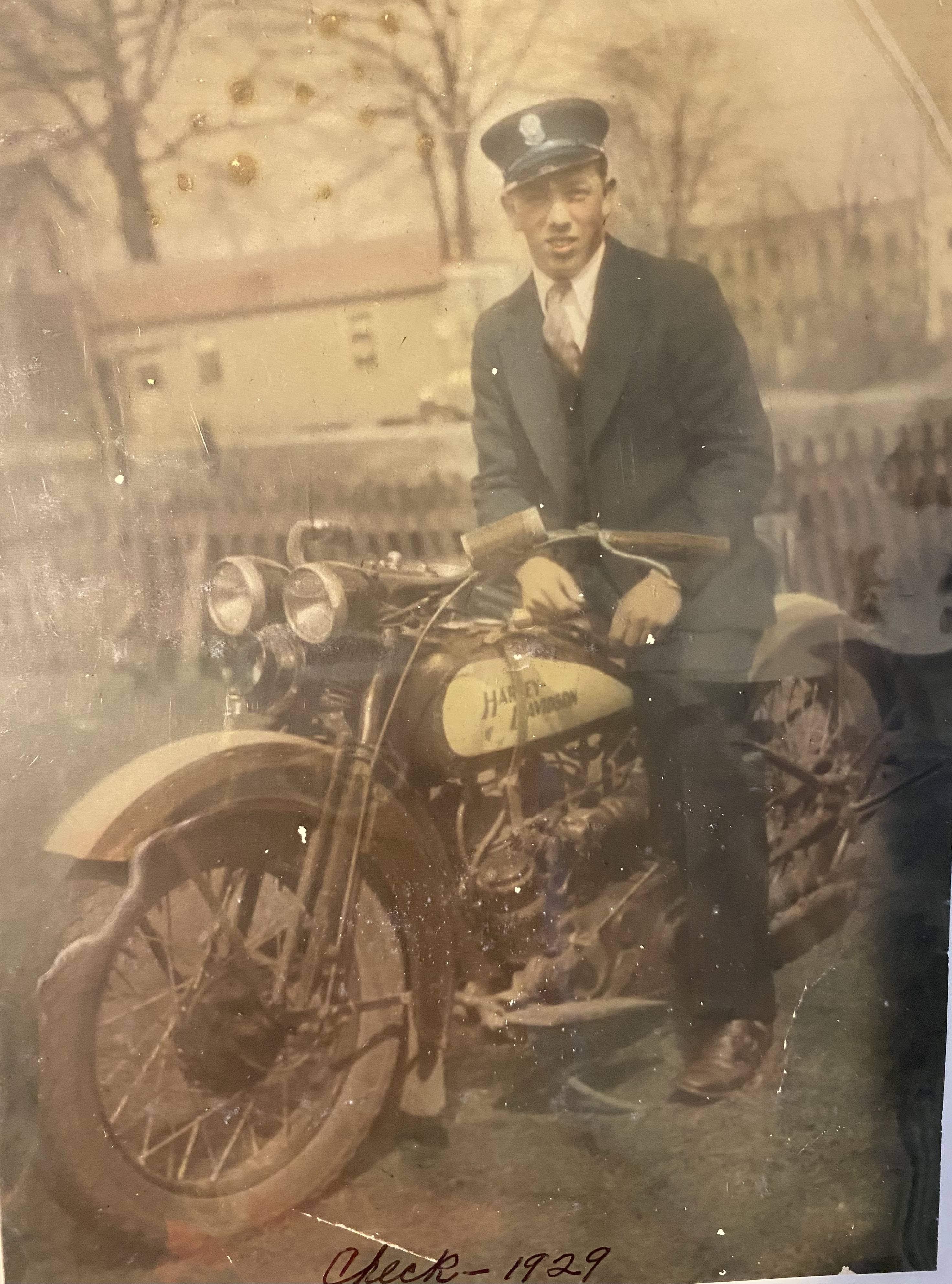 Papaw traveled all over the world with my grandmother visiting and staying with missionaries, and he also traveled through his hometown as a teen standing on his circa 1920s motorcycle. He was the trusted treasurer of his church for as long as I can remember.  Papaw played football before there was all the protective clothing, and he loved the game until Alzhiemer’s disease took his mind. He retired from C & O railroad, and he once owned a grocery store that was flooded twice by the Ohio River. It was the ‘37 flood that ended those retail days and inspired him to build a house on a hill.  Yet, this same man once swam across the Ohio River from South Shore, KY to somewhere near Portsmouth.