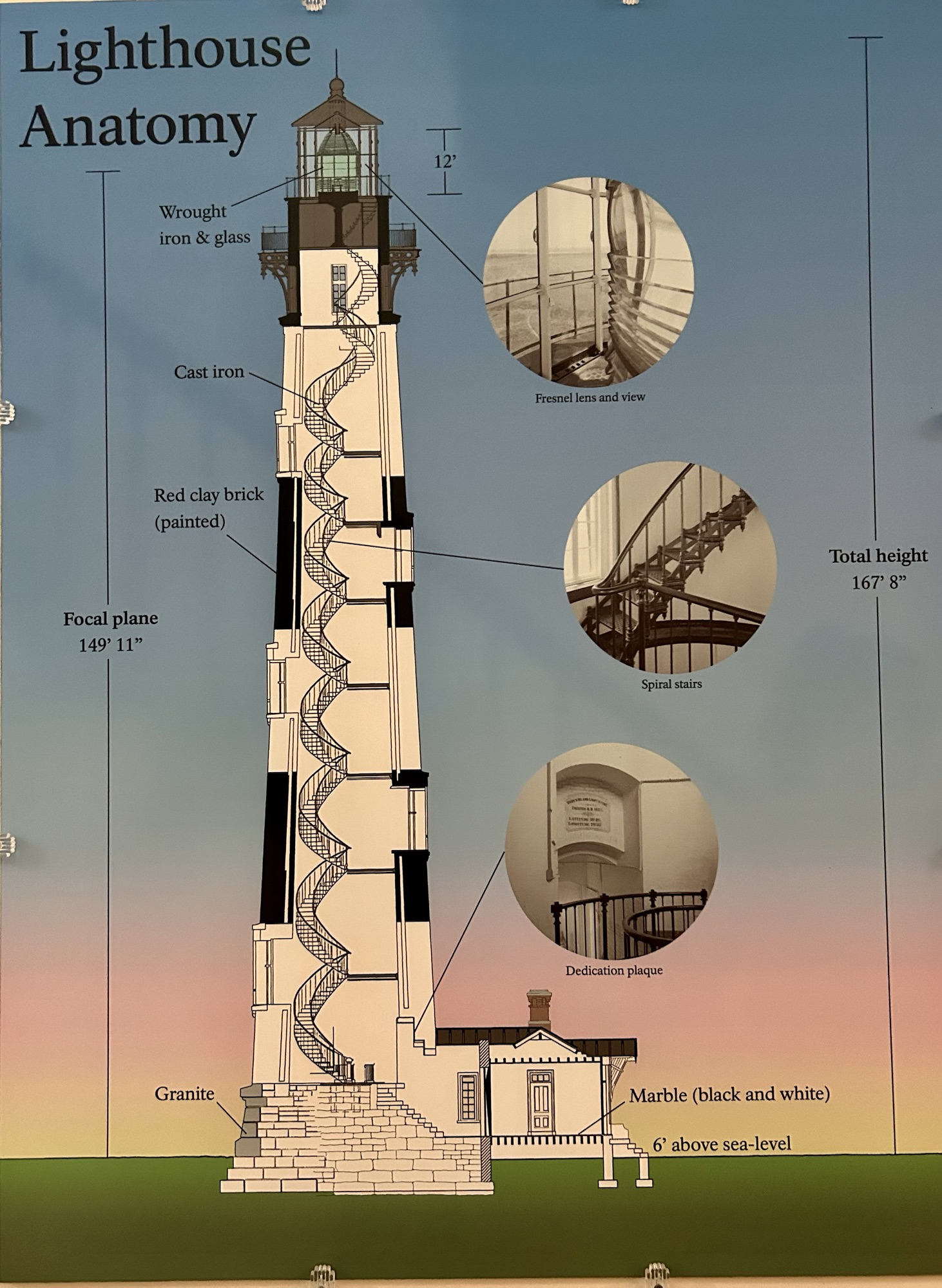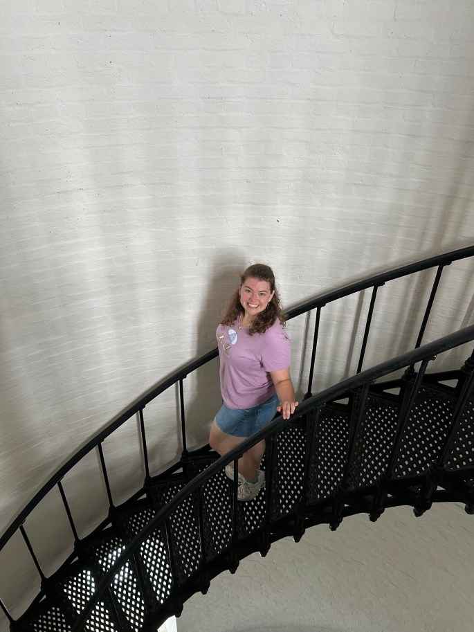 On and on we climbed.  Our thighs were burning, and none of the windows on the lighthouse’s walls were open.  Although there were small fans on each landing, they did little to prevent the sweat that accumulated on our brows and backs. Each time I reached a landing, I would marvel at the number of steps still above me, but I also felt a sense of amazement as I looked back down at the number of steps I had already climbed before shouting, “Clear!”