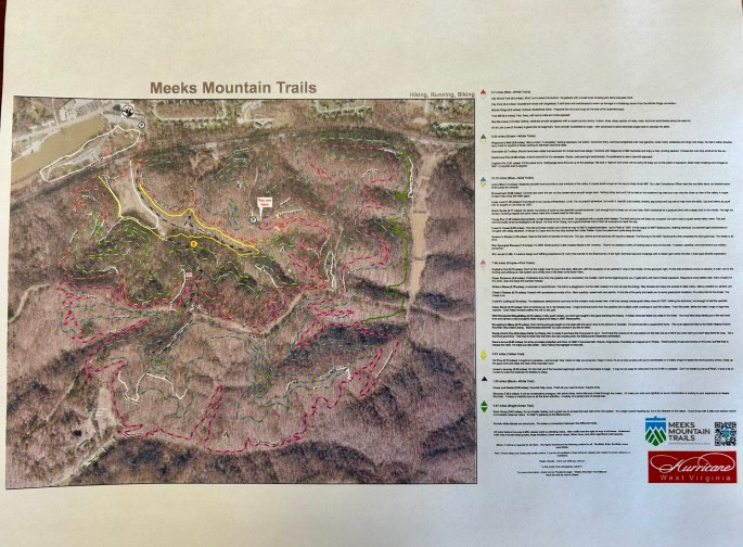 We arrived at Hurricane Park to hike Meeks Mountain Trails, a printed map of all the trails in hand. However, we were unsure where to start since this was our first visit. As luck would have it, we encountered a park worker who enthusiastically explained the trail system—including the way the trails were marked and the level of challenge for each trail. He recommended the red and white trail on our first visit and offered advice for future, more challenging, hikes.