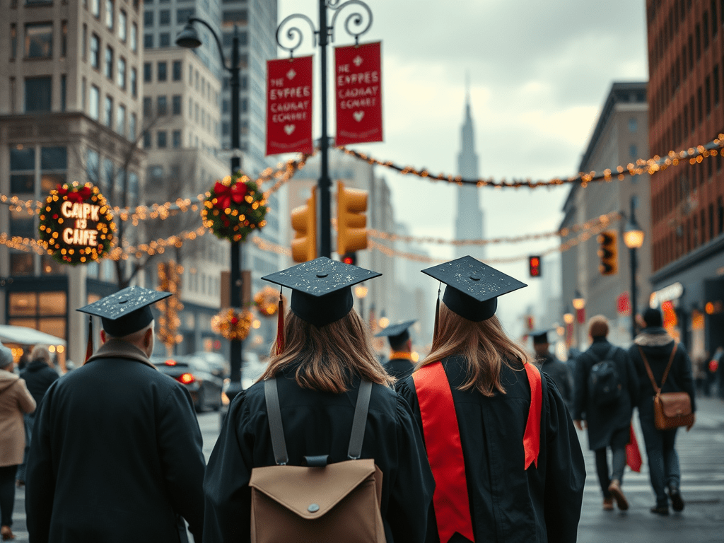 It was a cold, cloudy Saturday morning. I was waiting for the traffic light to change at a major downtown intersection. All around, Christmas decorations, lights, and baubles sparkled as people dressed for a special occasion hurried towards the city’s arena. I wondered about the unusual sight of numerous people on the sidewalks at this time of day. With sudden clarity, I realized it was the university’s December graduation as groups passed in caps, gowns, tassels, and hoods.