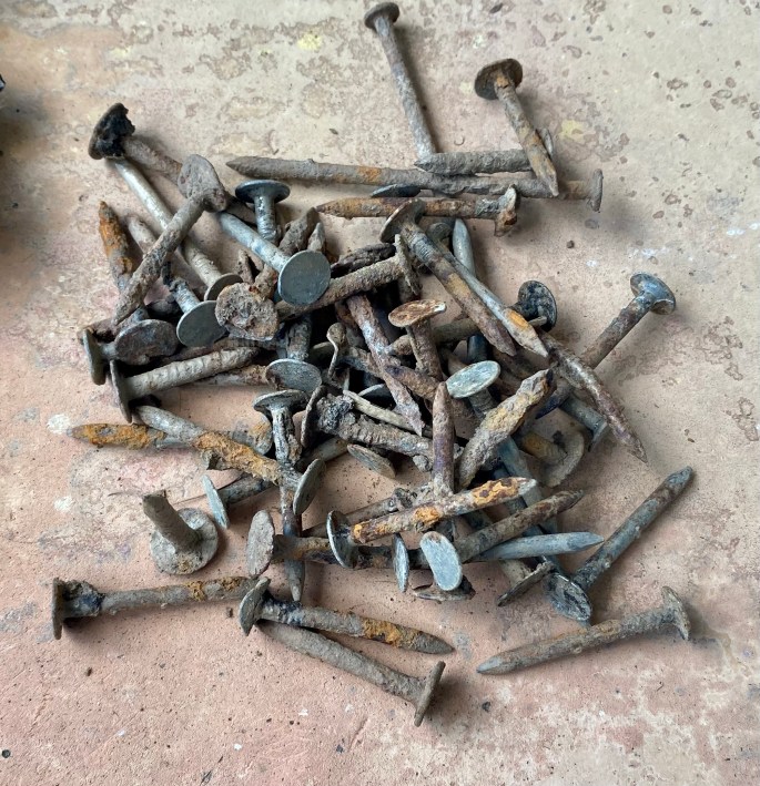 How many times had I previously weeded this bed since the start of spring and never noticed the nails?  While I worked, my brain dumped other notions, such as how many times do I overlook my own flaws, but not those of others.  Likewise, how many times have I done the reverse, picking myself apart and quickly absolving others who may have the same so-called, “flaws.” As my field of vision became more agile in finding nails, my brain dump also grew larger.