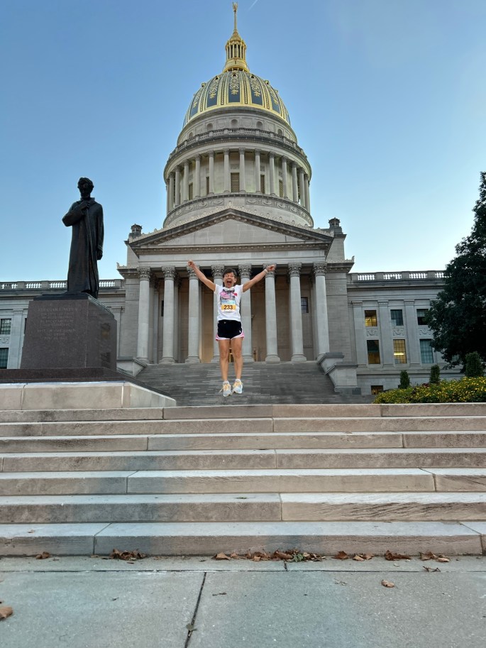 It was this extended training that gave me confidence to run the CDC again. In addition, the weather worked in my favor. Temperatures were in the 50s when the race began in front of the state capitol. Running along the Kanawha River in the first mile, runners quickly spread out as paces varied.