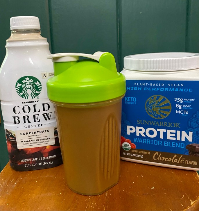 **1-2 scoops favorite protein powder (I like chocolate flavored for coffee.)
